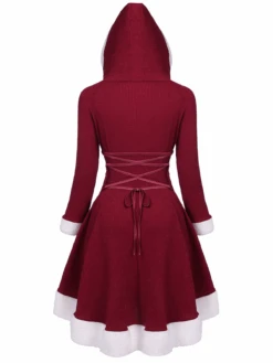 1950s Furry Patchwork Solid Lace-up Dress