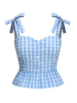 [Pre-Sale] Blue 1960s Straps Plaid Ruffled Hem Tops