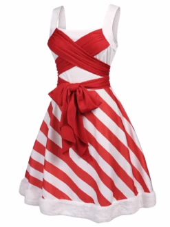 Red 1950s Stripes Bow Swing Dress