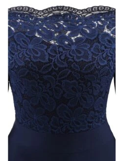 An adventurous-infused stunner from Retro Stage! A gorgeous vintage style dress full of feminine radiance, the gorgeous wine red, the dark blue and black silhouette is dancing with lace floral throughout the midcentury silhouette. Crafted in lace the off-shoulder is framed by the darling short sleeve and is centered by a natural waistline for a dash of retro accent.