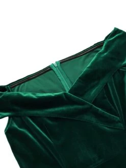 Be remembered, darling! Flatter your figure and charm the room in this retro beauty that flaunts an off-shoulder neckline design, with a joy to wear thanks to the smooth and stretchy feeling of velvet with dark green color. Still their hearts, darling!