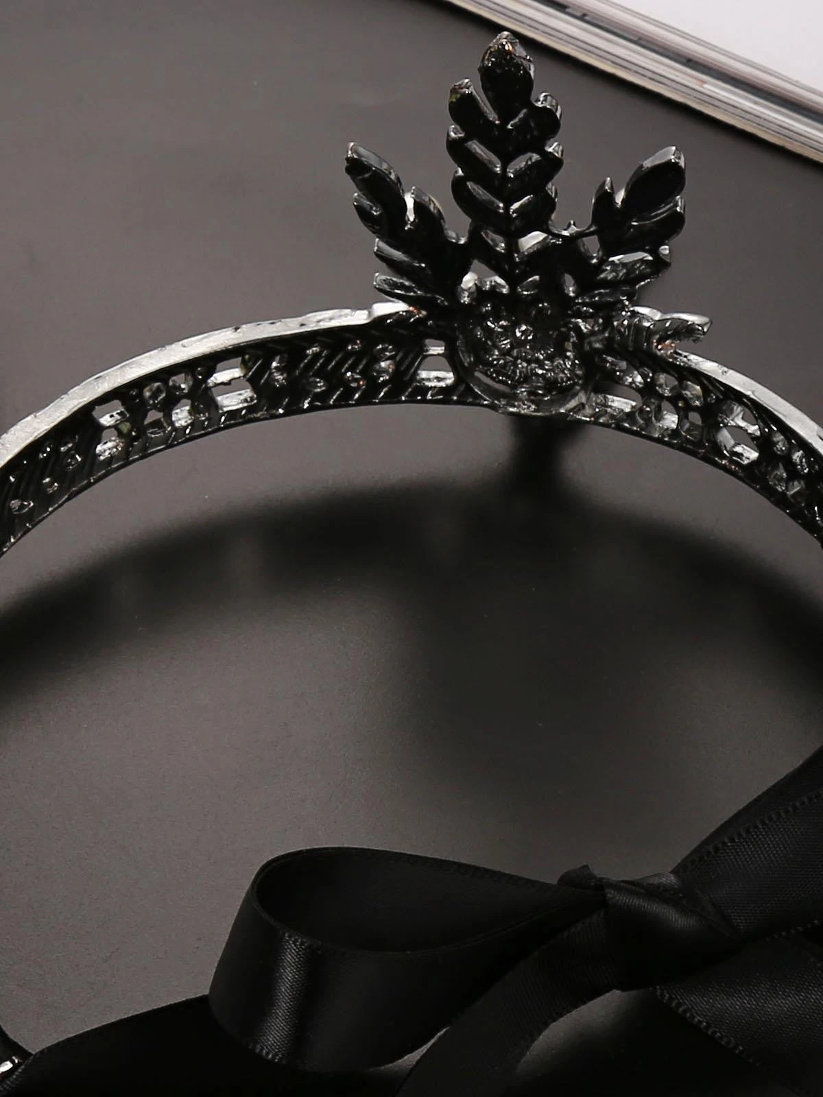 - Crown shaped metal headband with ribbon closure
