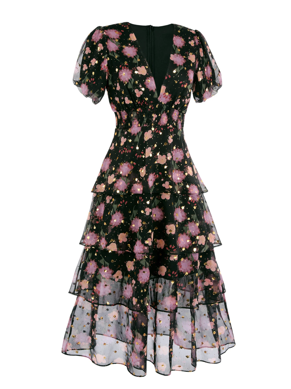 The elegant, light and breathable fabric is different from the small floral skirt. Although the print of the floral skirt is composed of floral patterns such as flowers and leaves, the pattern is much larger than the small floral pattern, which can create a warm and elegant retro style.