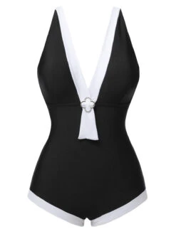 Blue 1930s Folds Back Strap One-Piece Swimsuit