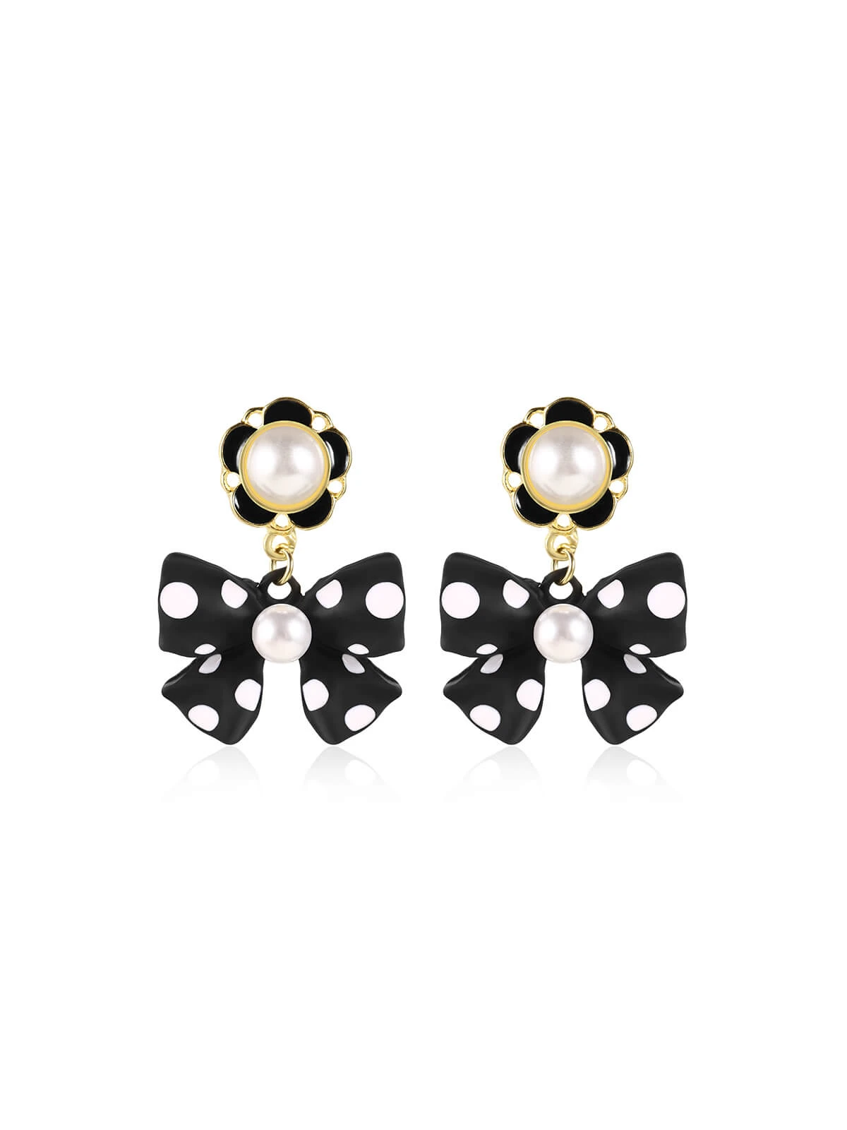 Retro Polka Dots Bow Pearls Earrings