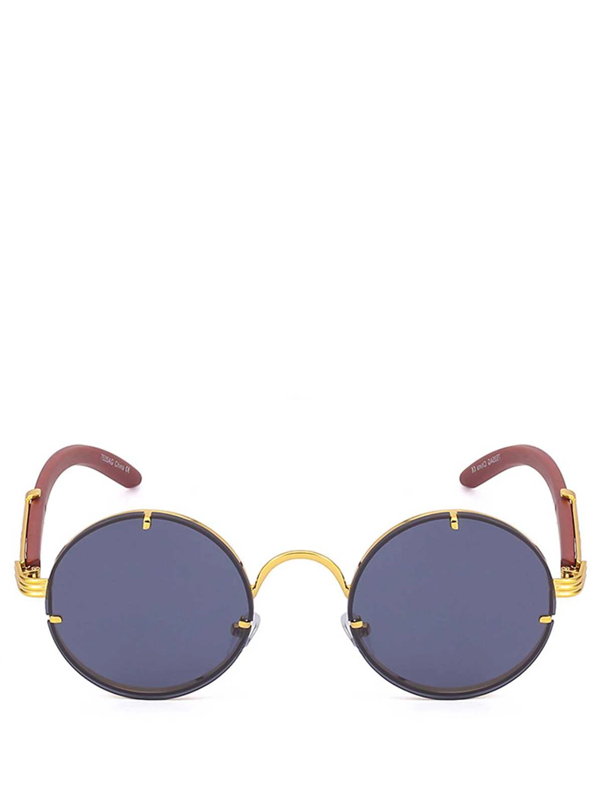 Retro Wood Grain Round Frame Sunglasses