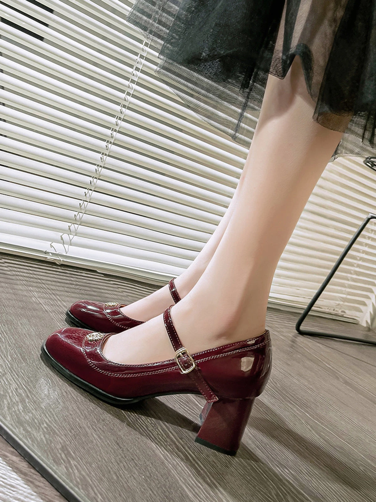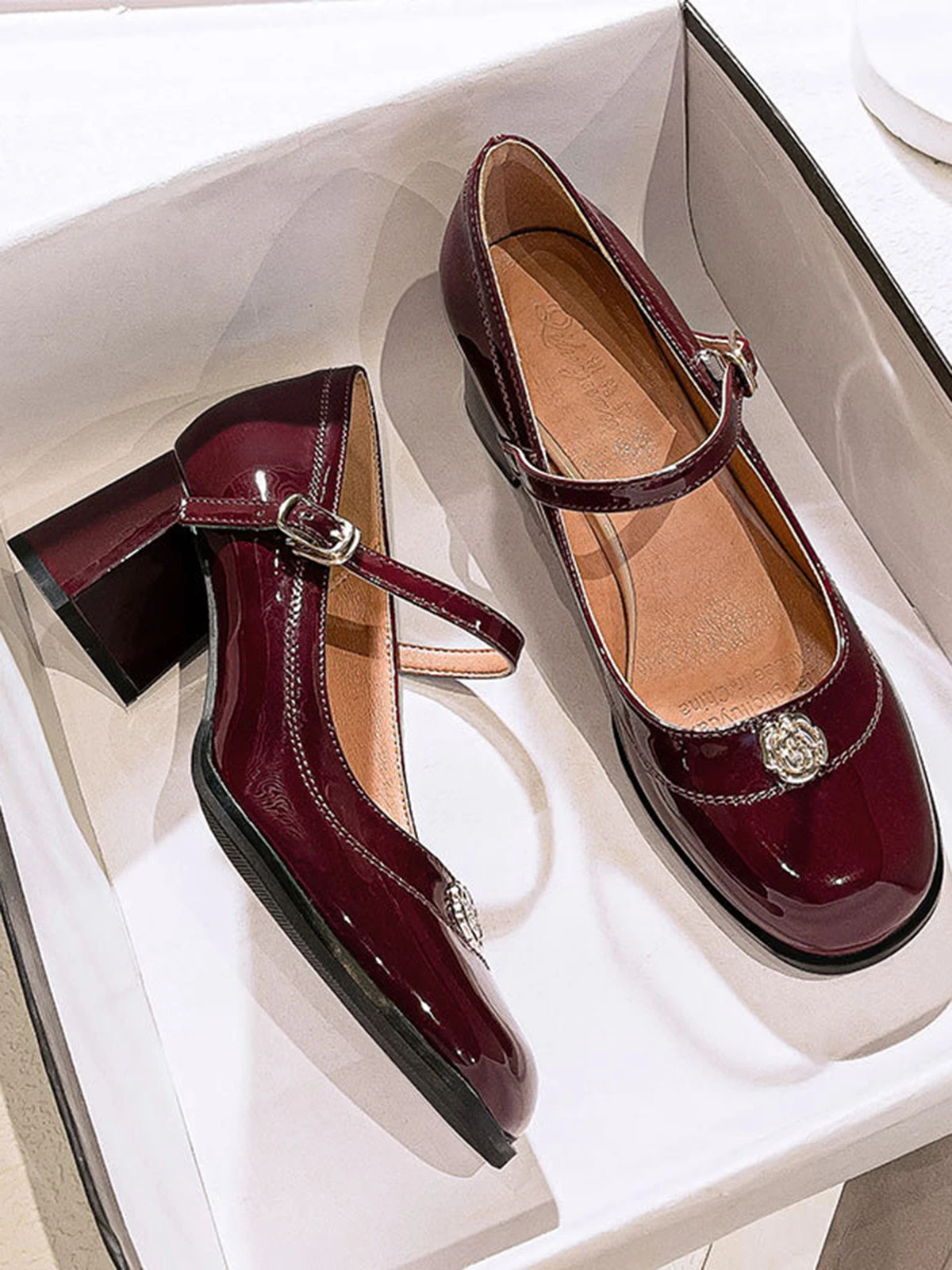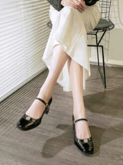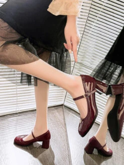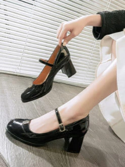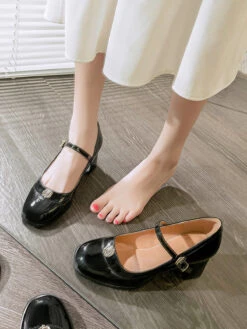 Be the first to review “Round Toe Patent Leather Mid-Heeled Shoes” Cancel reply