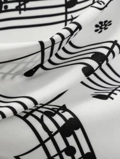 Raise your standards, dolls! The dress features a lovely music note print throughout a white backdrop cast in a marvelous stretchy fabric. This adorable dream is a retro-inspired swing dress in polyester complete in a gorgeous white with music note patterns throughout.