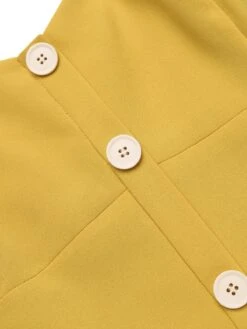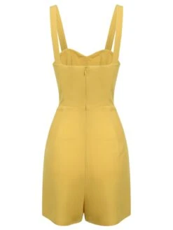 Add some pumpkin spice to yourself! This yellow 1950s spaghetti strap summary romper from Retro Stage is crafted in a fabulous soft fabric. With a romper this special, you just know that you‘re going to look a million dollars at your party, prom, or tea party
